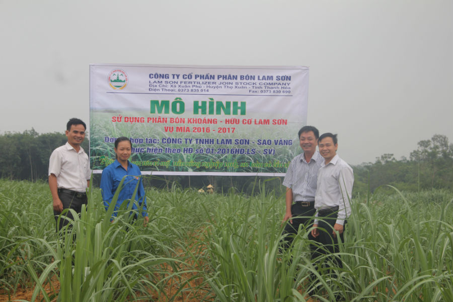 Để khẳng định chất lượng và hiệu quả của phân bón khoáng hữu cơ Lam sơn đối với vùng mía đồi Sao Vàng. Vụ 2016-2017 Công ty cổ phần Phân bón Lam sơn đã hợp tác với Công ty TNHH MTV Lam sơn - Sao Vàng thực hiện mô hình sử sụng bộ sản phẩm phân bón khoáng hữu cơ Lam sơn cho cây mía.