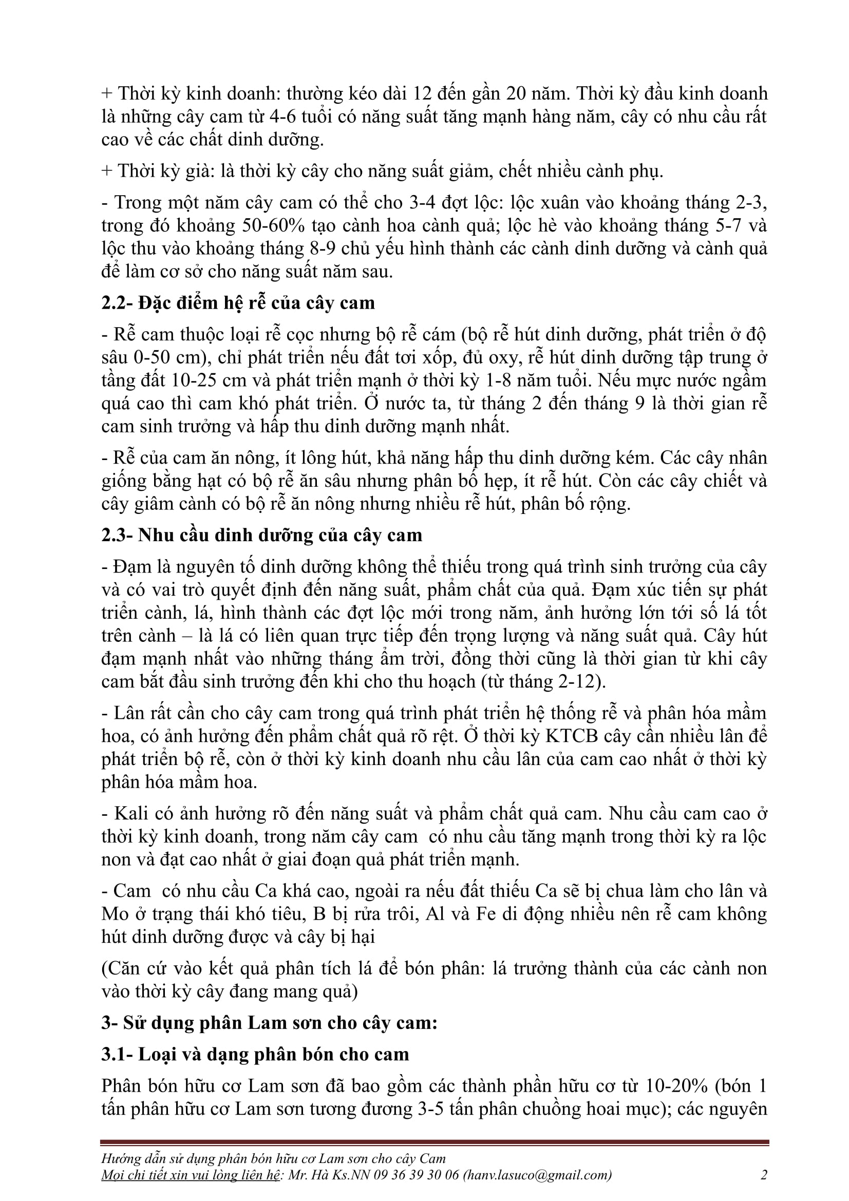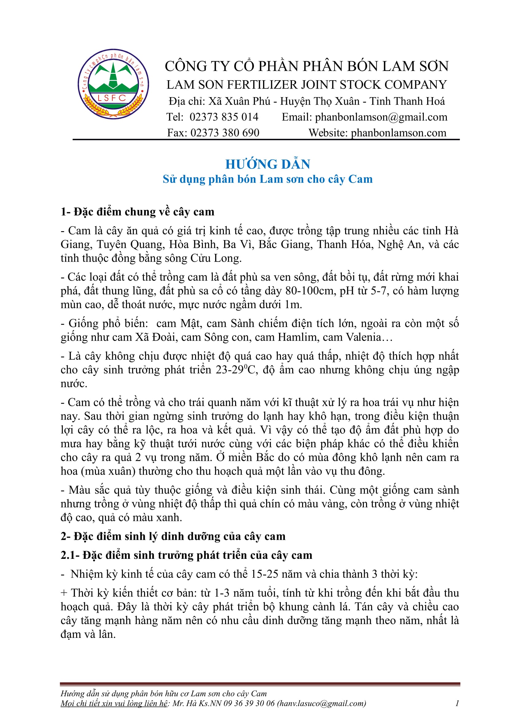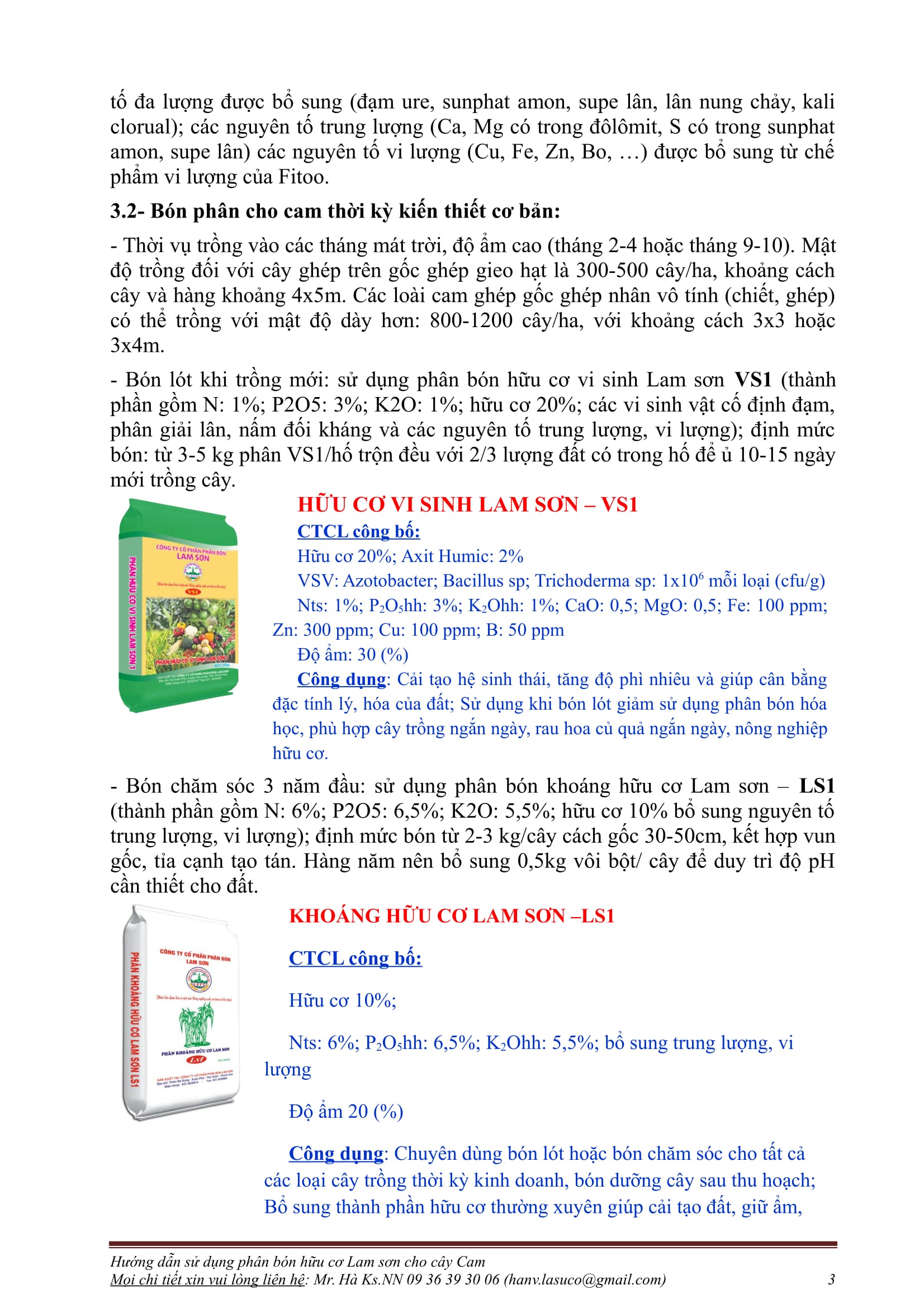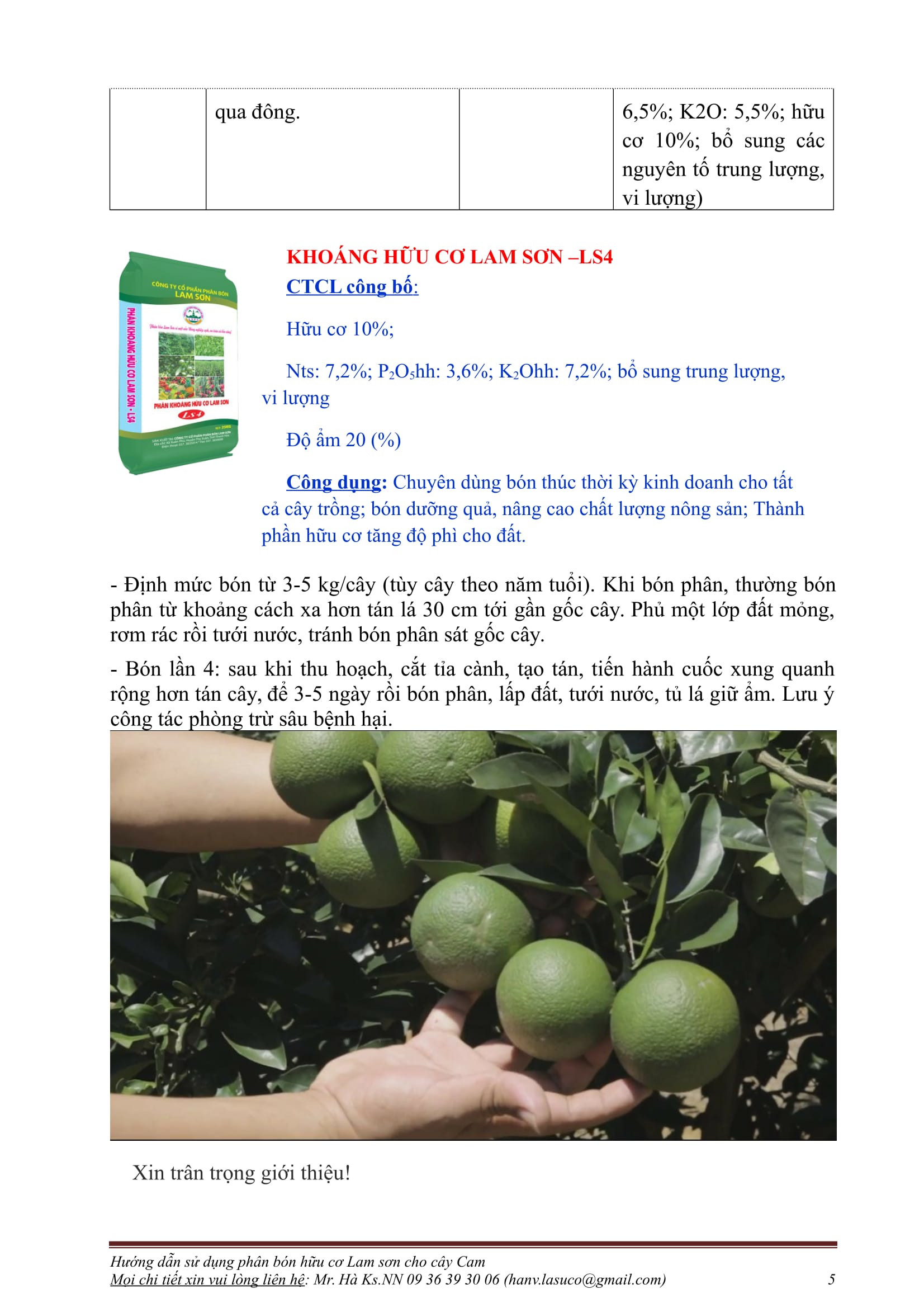 Sử dụng phân bón khoáng hữu cơ Lam sơn cho cây Cam