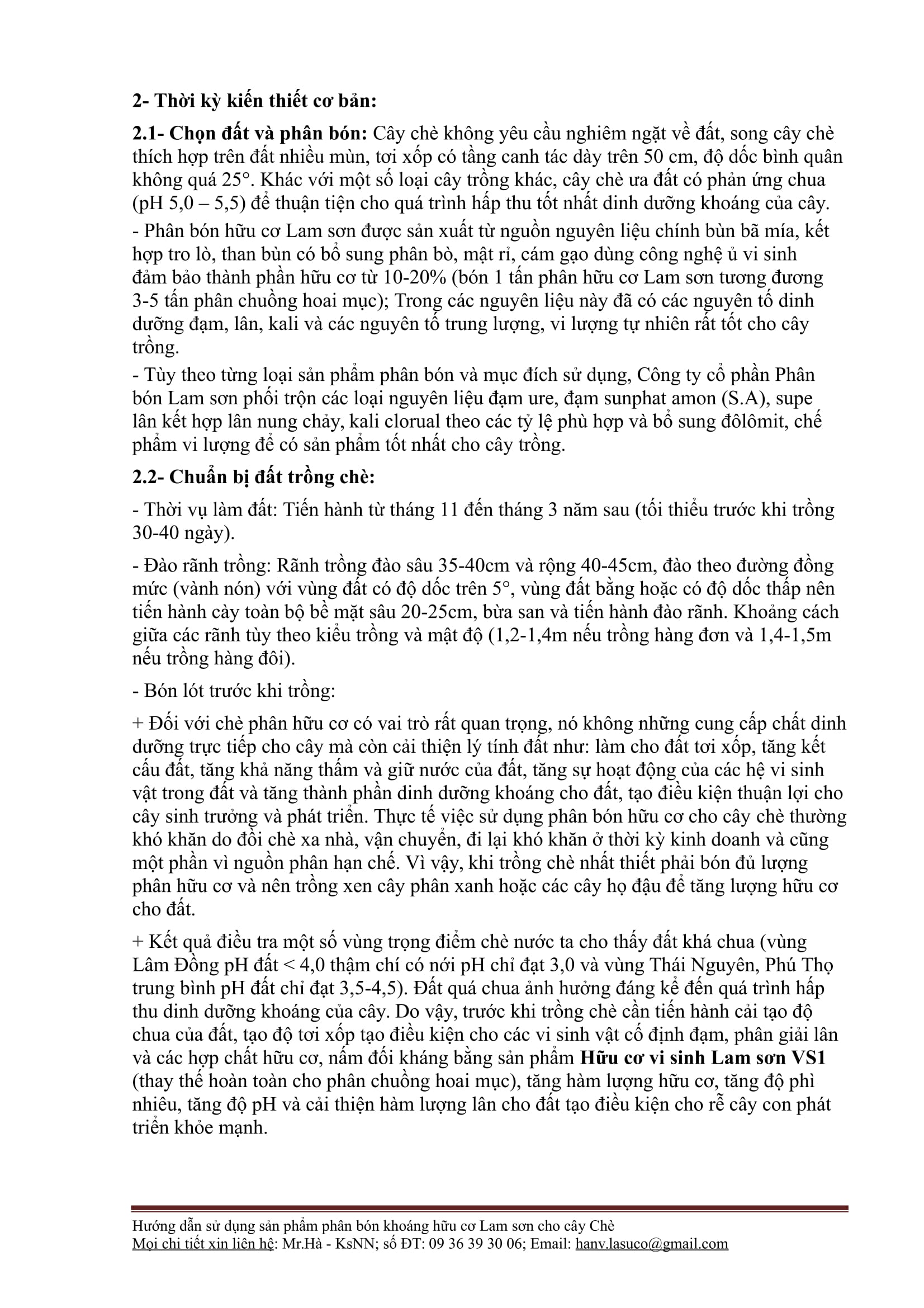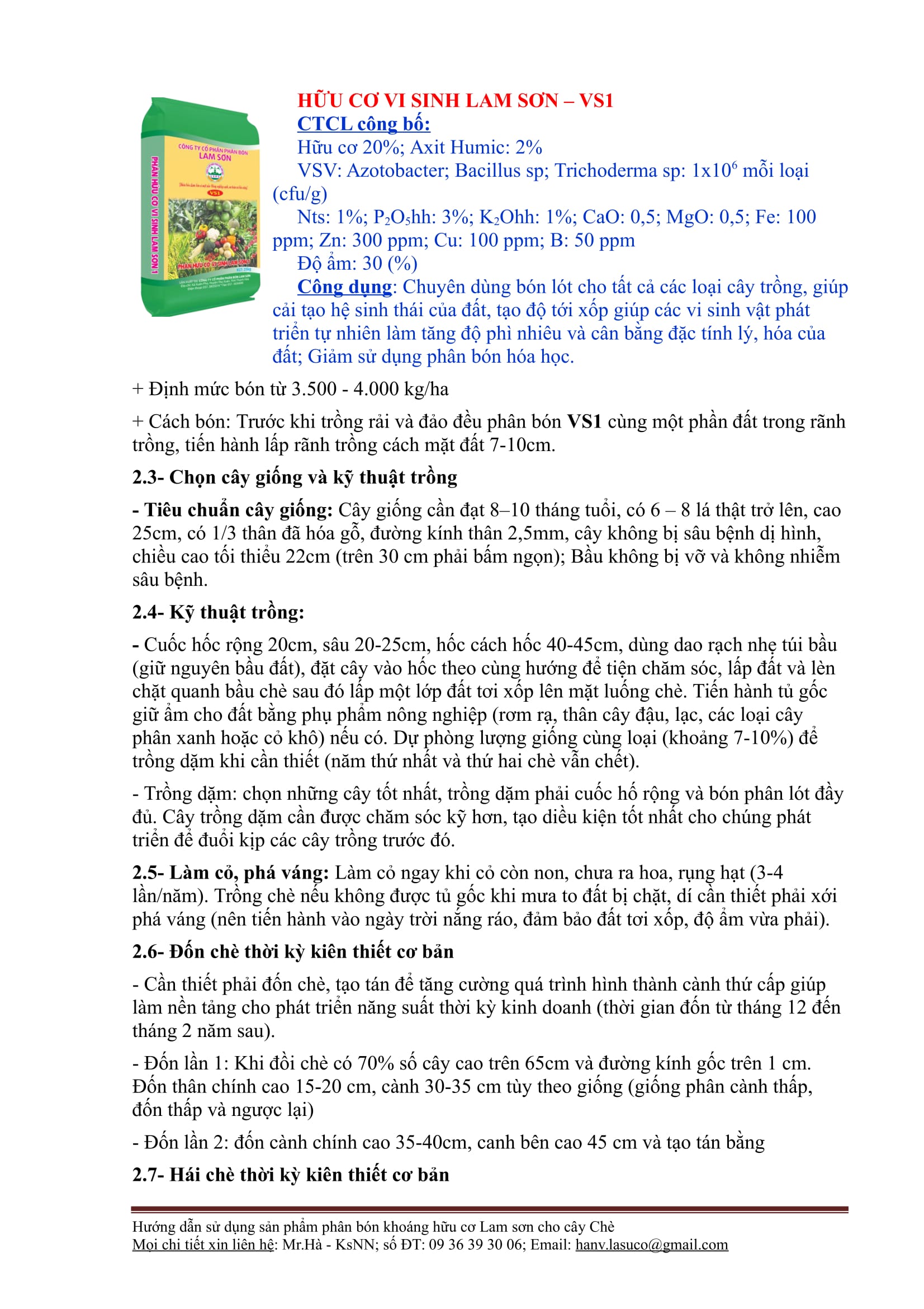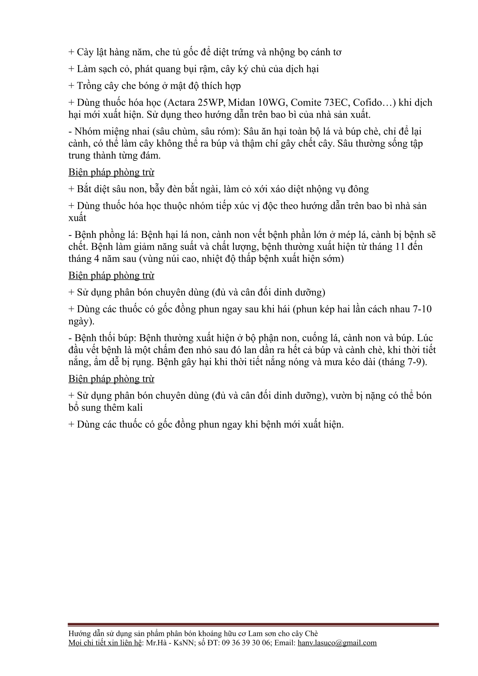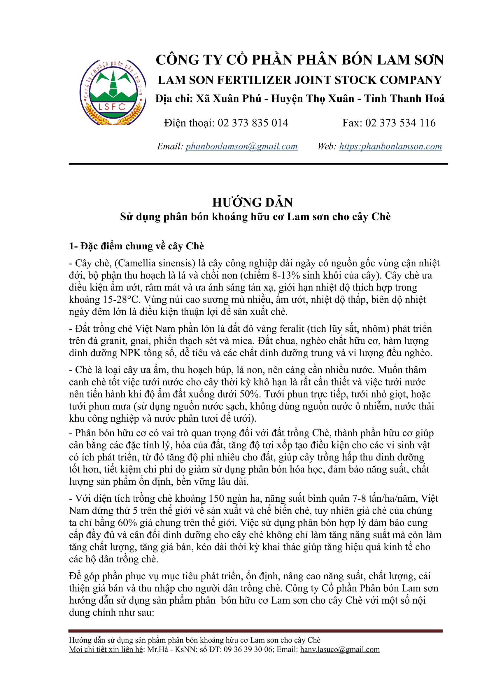 Sử dụng phân bón khoáng hữu cơ Lam sơn cho cây Chè