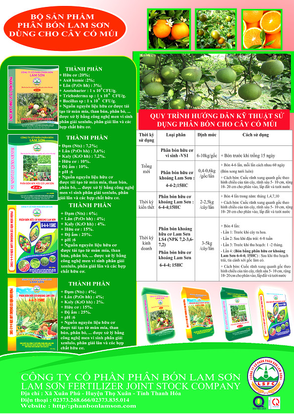 Tờ rơi hướng dẫn sử dụng phân bón Lam Sơn cho cây có múi