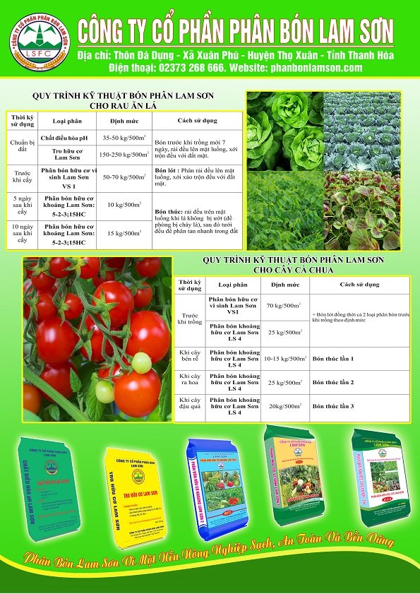 Tờ rơi hướng dẫn sử dụng phân bón Lam Sơn cho cây rau màu